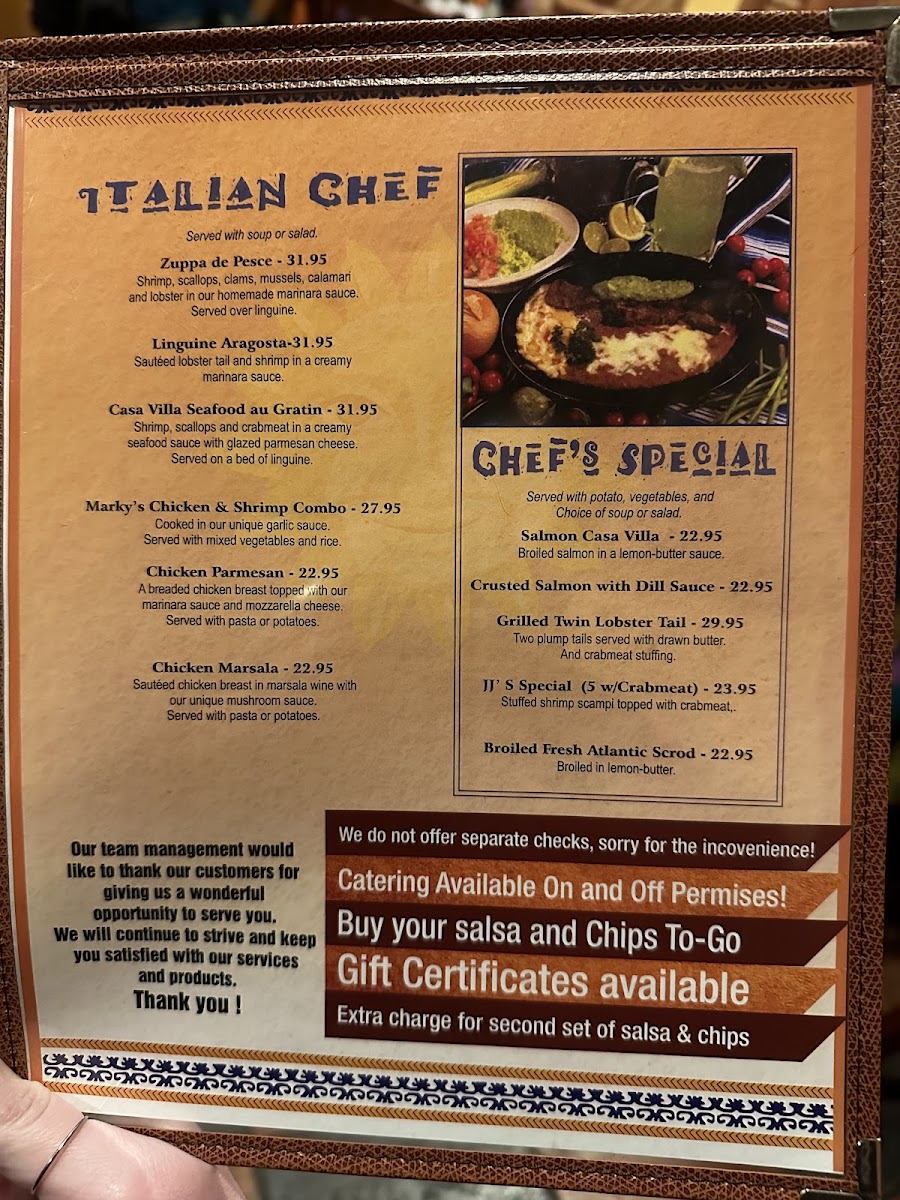 Introducing Casa Villa, a charming Mexican restaurant located at 395 Albany Ave, Kingston, NY. Step inside this inviting eatery where hospitality meets culinary passion. The owners, a delightful couple, ensure every guest feels at home. Their menu showcases an array of authentic dishes, from hearty Chicken Soup and vibrant House Salad to sumptuous Enchiladas Poblanas and crispy tacos. Seafood lovers will be thrilled with the Camarones a la Mexicana, featuring perfectly spiced jumbo shrimp.